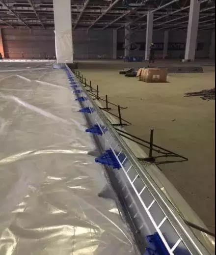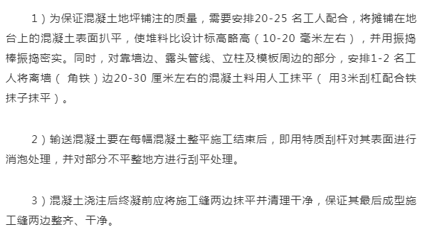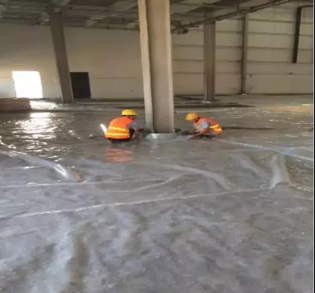 浇筑完成后采用洒水对地面进行养护。直接采用进行土工布覆盖,养护期为14天-20天,强度100%后允许上升降机,施工7天内禁止通行,四周采用警戒线进行维护,最少14日维持湿润养生状态。
