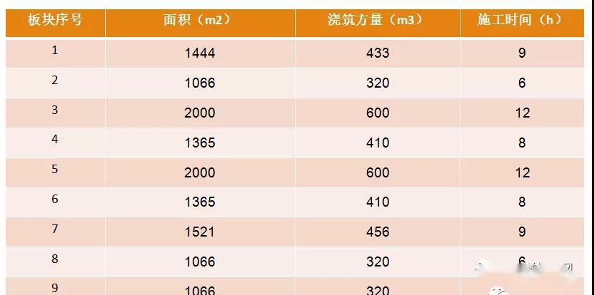 板块划分及每天施工量