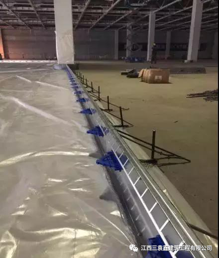 浇筑完成后采用洒水对地面进行养护。直接采用进行土工布覆盖,养护期为14天-20天,强度100%后允许上升降机,施工7天内禁止通行,四周采用警戒线进行维护,最少14日维持湿润养生状态。